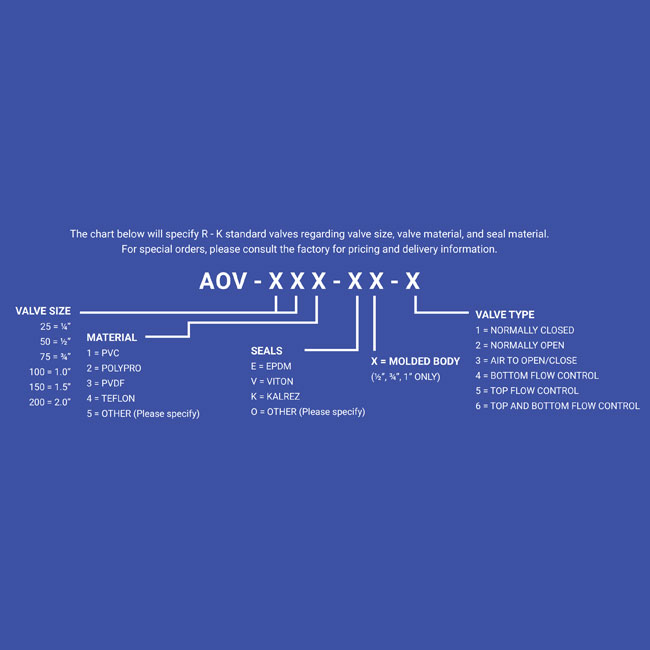 | Type 6 | Top and Bottom Flow Control | Combines Type 4 and Type 5 features with adjustable screws on both ends for maximum flow control flexibility. The chart below will specify R - K standard valves regarding valve size, valve material, an |